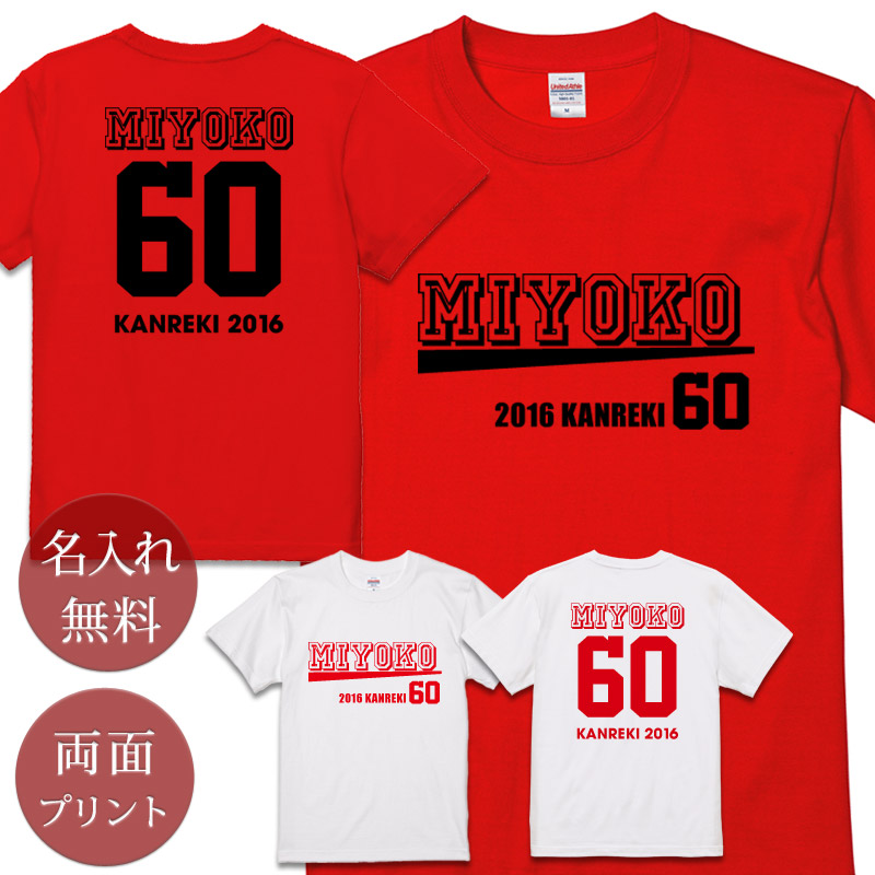 還暦御祝い名入れTシャツ 60sライン(両面印刷) 4,180円(税込)