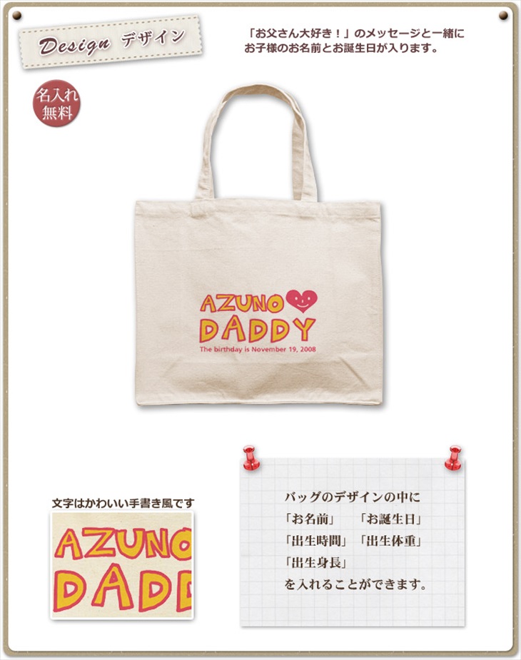 【I LOVE DADDY 名前入りレッスンバッグ(スクエアトート)】