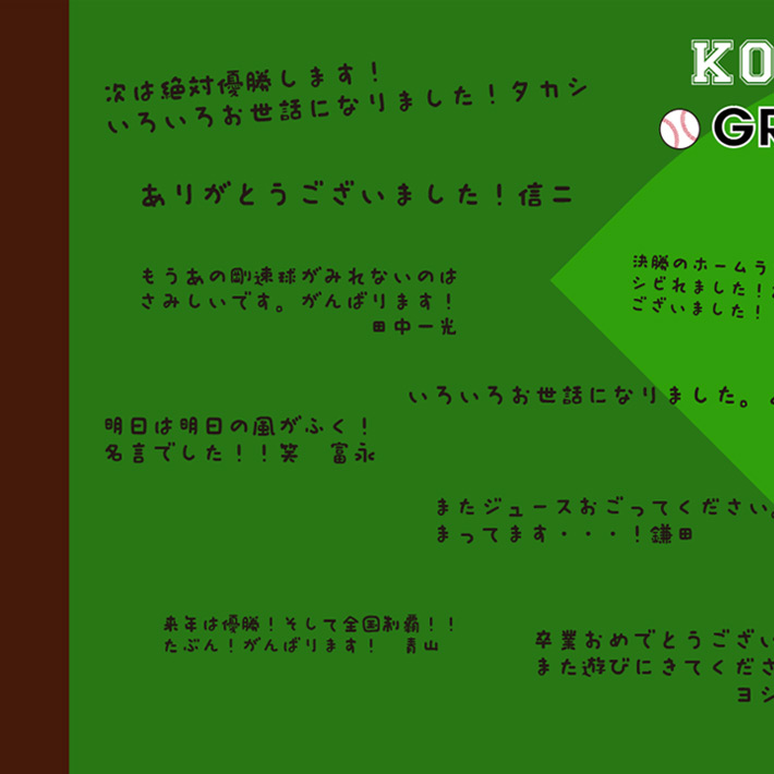 今回ご注文された方は印刷用の元データを3年間、無償で保存させていただきます。 来年以降も卒団記念等で元データが必要になった場合はご連絡ください。