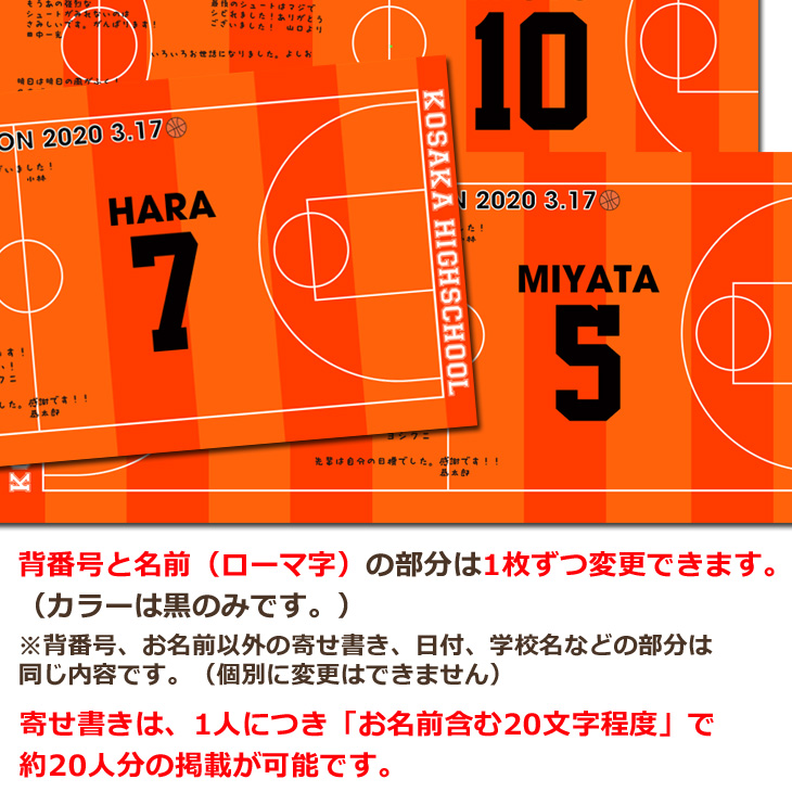 ミニバス、バスケットボールチームの卒団記念に♪お名前、背番号、日付、寄せ書きが入るバスケットコートのデザインタオル