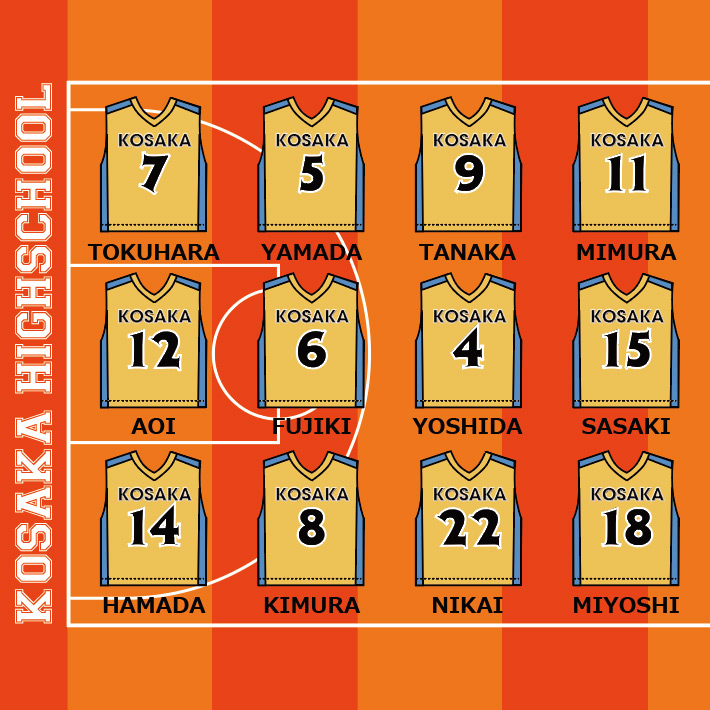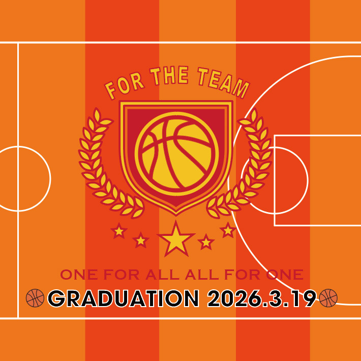 バスケットボールチームの卒団記念に♪お名前、背番号、ユニフォーム、エンブレムが入るデザイン