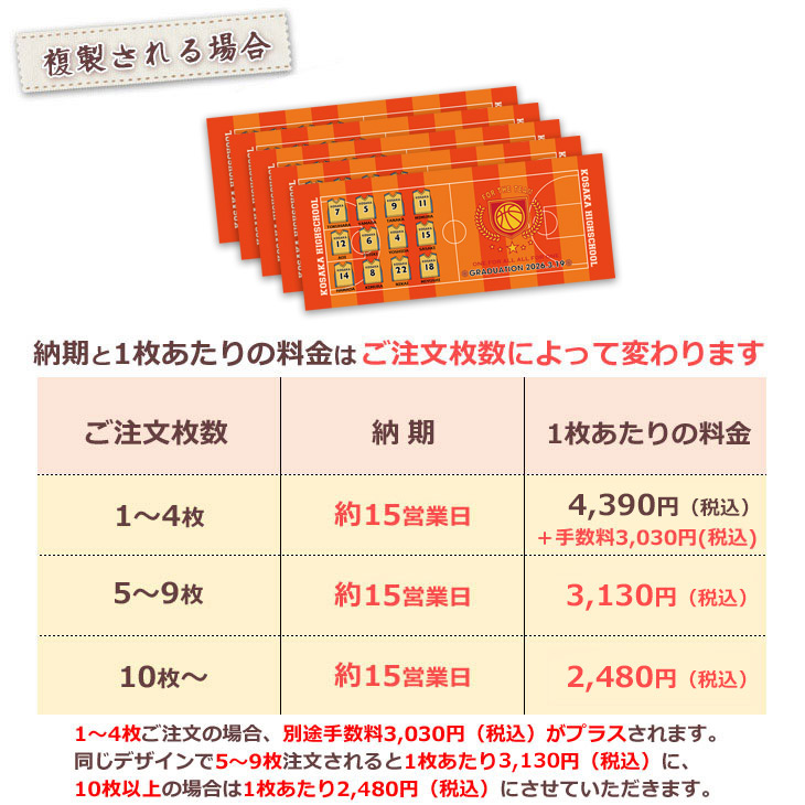 納期はデザインが確定した日から起算しています。デザイン作成に必要な情報がすぐに頂けない場合はお届けが遅れますので予めご了承ください。