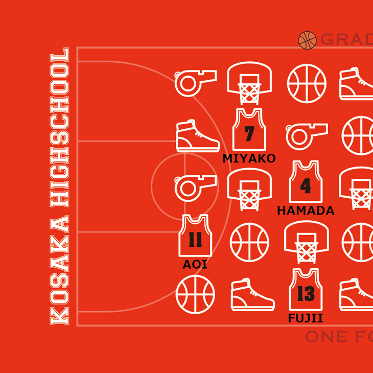 ミニバス、バスケットボールチームの卒団記念に♪お名前、背番号、日付、チーム名が入るアイコンデザイン