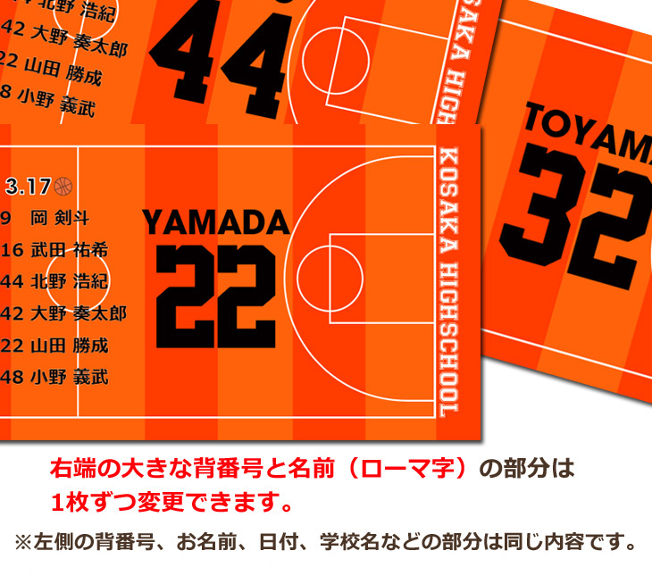 バスケットボールチームの卒団記念に♪お名前、背番号、日付入りバスケットコートデザイン