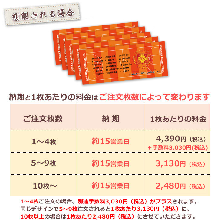 納期はデザインが確定した日から起算しています。デザイン作成に必要な情報がすぐに頂けない場合はお届けが遅れますので予めご了承ください。