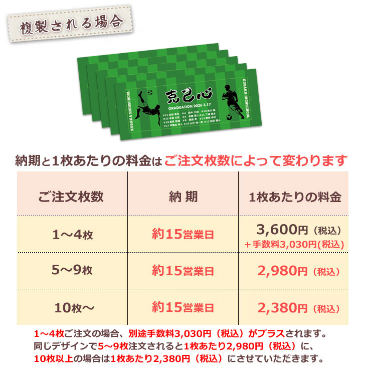 納期はデザインが確定した日から起算しています。デザイン作成に必要な情報がすぐに頂けない場合はお届けが遅れますので予めご了承ください。