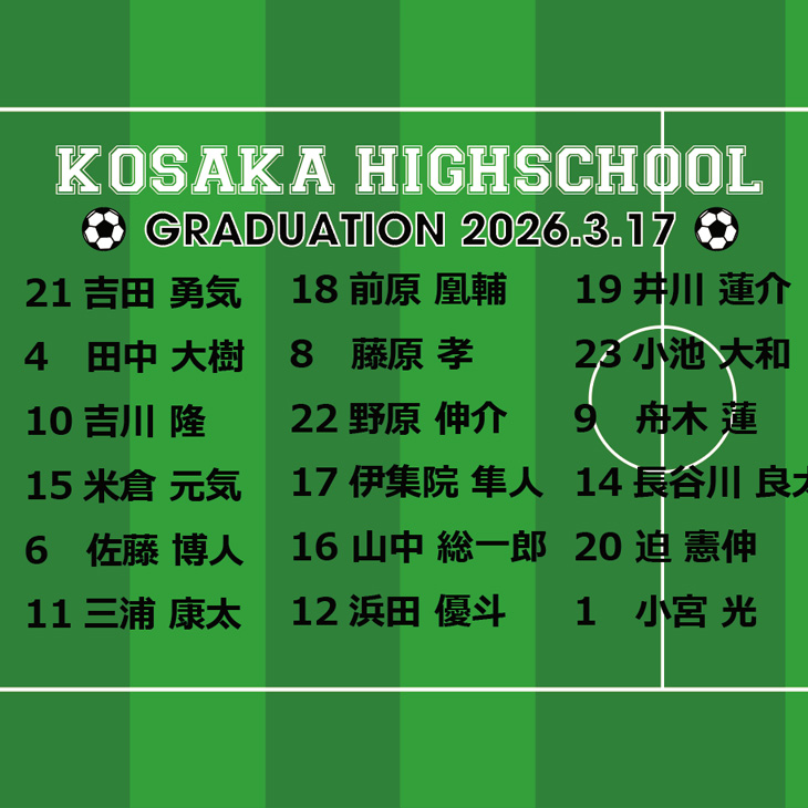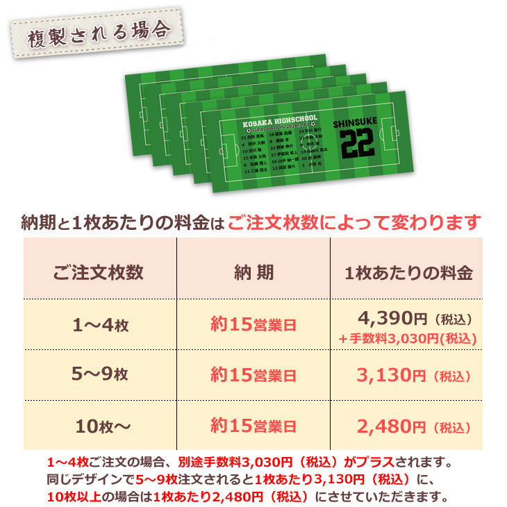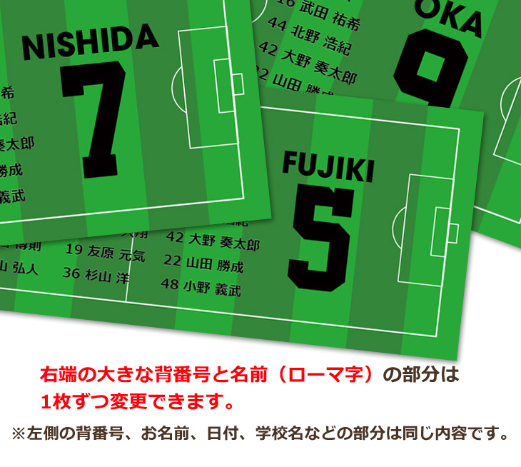 サッカーチームの卒団記念に♪お名前、背番号、日付入りピッチデザイン
