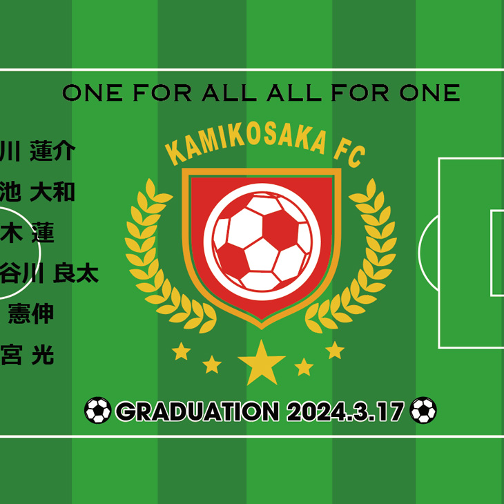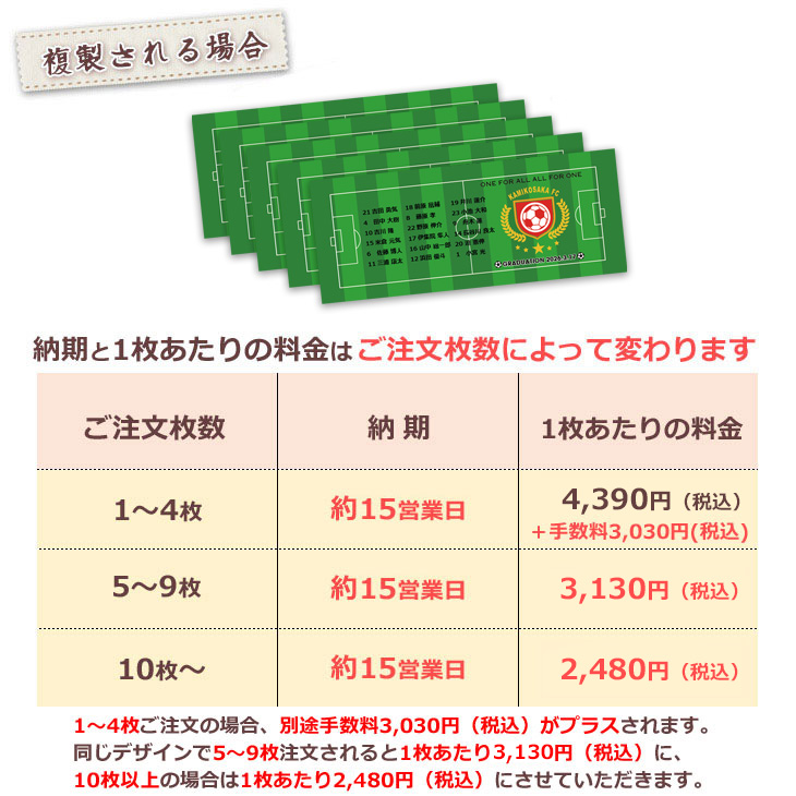 卒団される方全員分のお名前、背番号がはいります。※お名前は漢字(もしくは平仮名、カタカナ)とローマ字表記の両方を必ず当店までお知らせください。