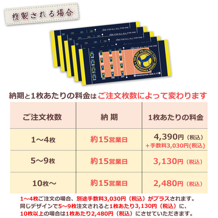 バレーボールチームの卒団記念に♪お名前、背番号、ユニフォーム、エンブレムが入るデザイン