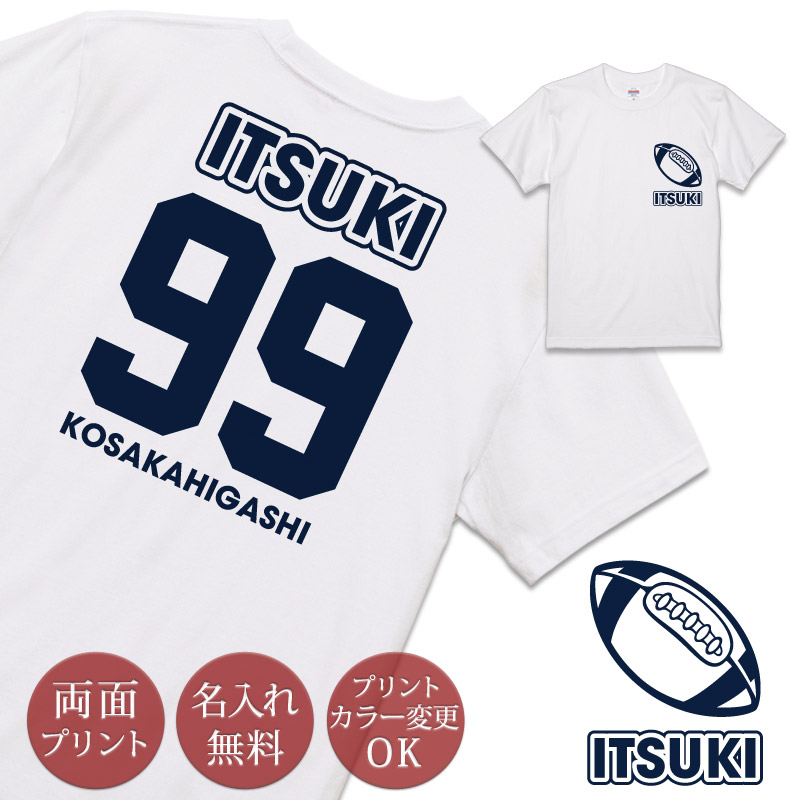 【10枚以上購入で1枚2,980円】チームTシャツ ラグビー&背番号デザイン名入れTシャツ(胸ワンポイント・両面プリント)