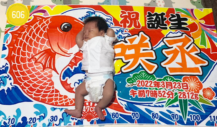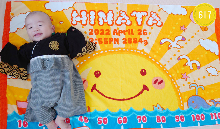 親戚から出産祝いでいただきました。100日の記念に撮影しました。かわいい商品をありがとうございます。