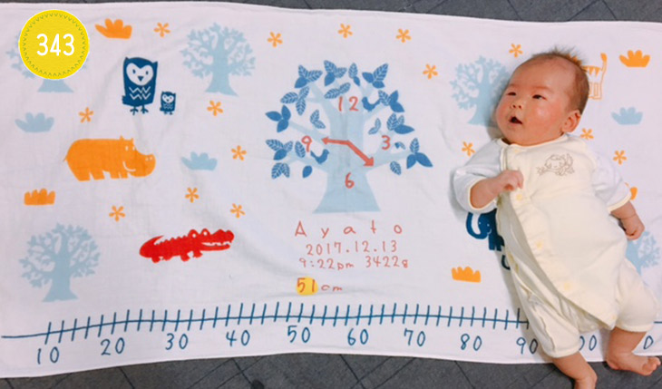 生まれた日付と時間がこの子だけの特別なタオルで素敵です!