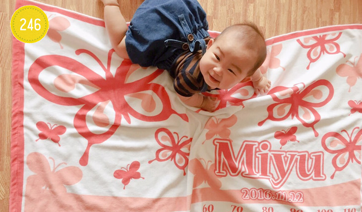 二十年来の親友から出産祝いにとこちらのタオルをプレゼントしてもらいました!さっそく記念撮影に娘にかけてみたところ、喜びのあまりこんな表情に…!普段から今治タオルを使っていたので、まさかオリジナルの今治タオルが使えるなんて感動です。一生の記念に大切にします。ありがとうございました!