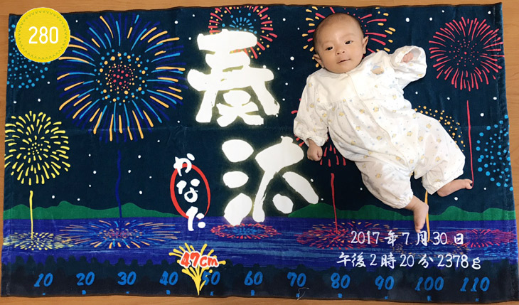8月生まれの息子。夏の象徴の花火と息子の名前入りのバスタオル。出産祝いのプレゼントとしていただきました。包みを開けた時のインパクトの大きさと、名前入りという特別感がとても嬉しかったです。