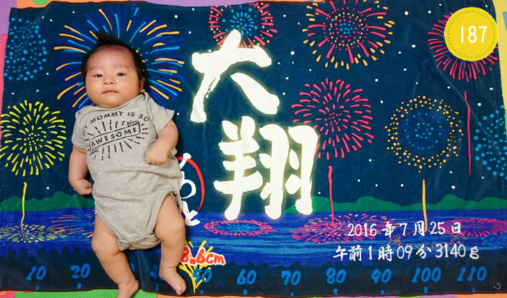 娘の名前や出生日時の入った特別なタオル、大切に使いたいと思います。